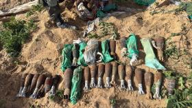 IDF troops searching southern Gaza discovered a stash of about 110 mortars, multiple rockets, and other combat gear, all hidden inside blankets and UNRWA aid packages.