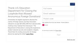 Thank U.S. Edu Dept for Closing Loophole Allowing Anonymous Foreign Donations