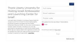 Thank Liberty U for Hosting Israeli Ambassador and Launching Center for Israel!