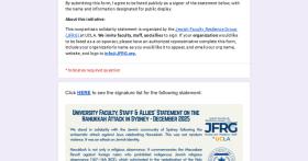 University Faculty, Staff & Allies’ Statement on the Hanukkah Attack in Sydney
