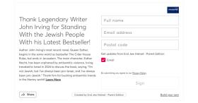 Thank Writer John Irving for Standing With the Jewish People