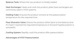 HTST Pasteurization, which stands for High-Temperature Short-Time Pasteurization, is a widely used method for pasteurizing food and beverages to eliminate harmful bacteria, viruses, and other microorganisms.